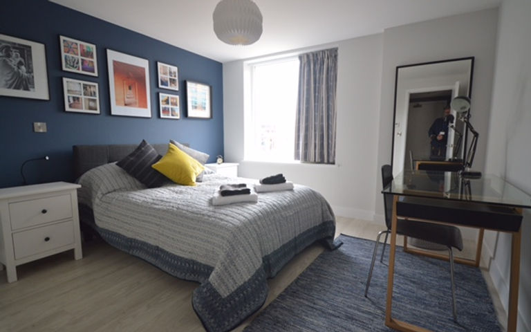 This brand new, luxury one bedroom apartment boasts a beautifully designed integrated kitchen and lounge with dishwasher, microwave, oven and hob. The furnishing and décor is tastefully conceived and the lounge area includes a sofa, armchair and 42” TV. There is also a small balcony.